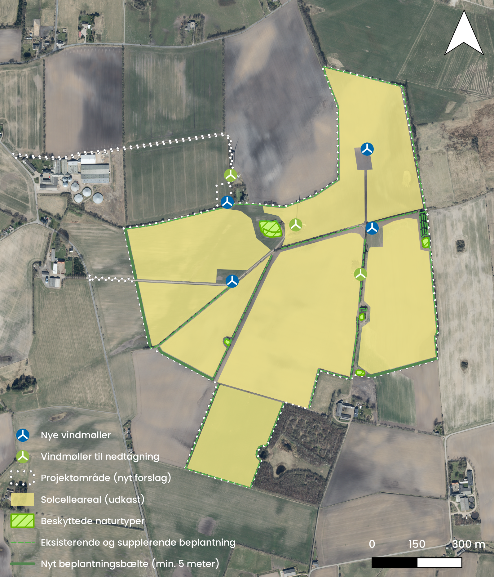 Green Wind A/S ønsker at etablere en energipark i Kolding Kommune bestående af fire nye vindmøller, der erstatter tre eksisterende vindmøller, et solcelleanlæg på cirka 64 hektar samt etablering af batterisystemer (BESS).