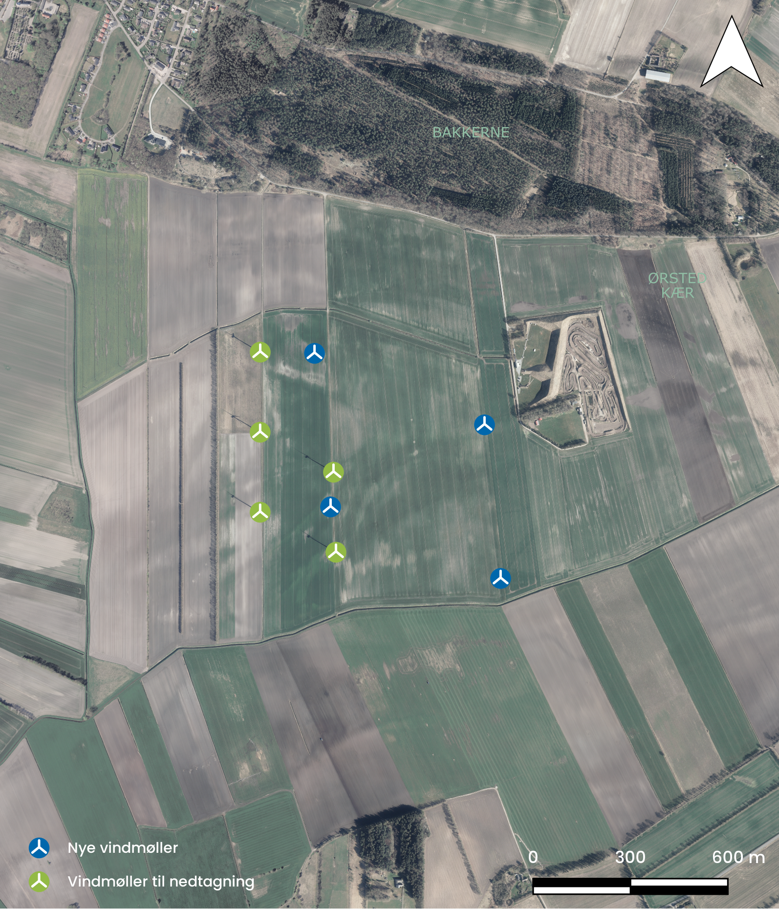 Green Wind A/S ønsker at etablere en vindpark mellem Ørsted og Allingåbro i Norddjurs Kommune bestående af fire nye vindmøller, der erstatter fem eksisterende vindmøller samt etablering af batterisystemer (BESS).